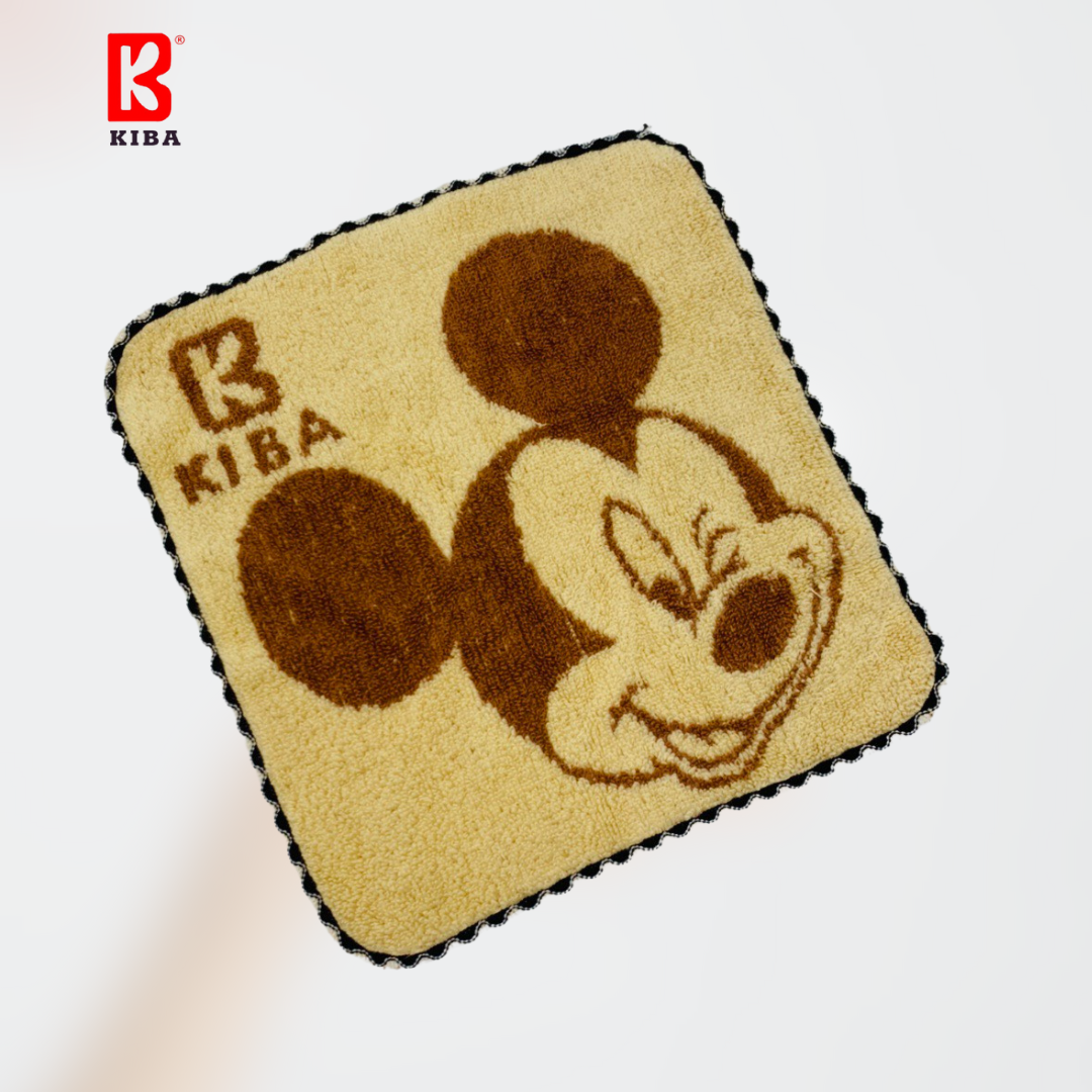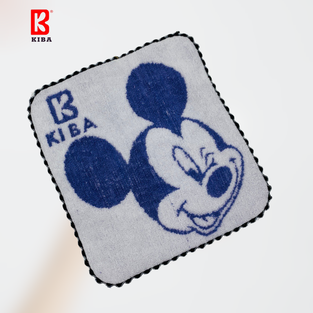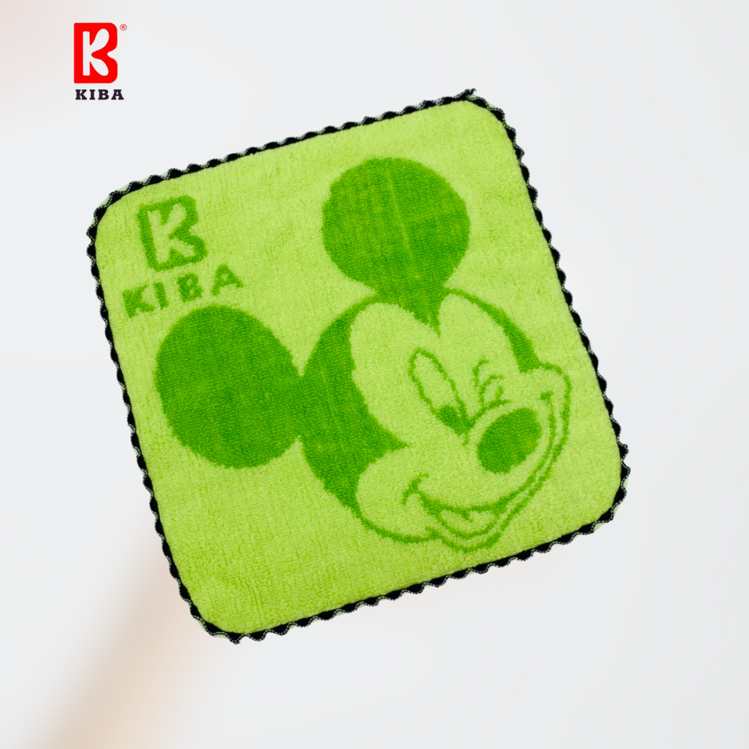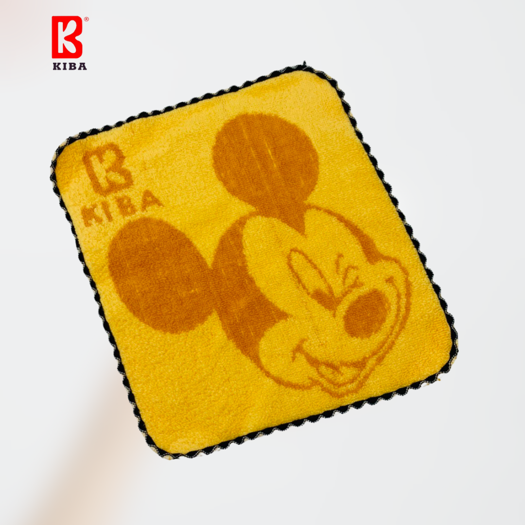 Khăn Mặt Cho Bé KIBA Bo Viền Mickey KT 25x25cm Chất Cotton Êm, Mềm, Thấm Hút Tốt, An Toàn
